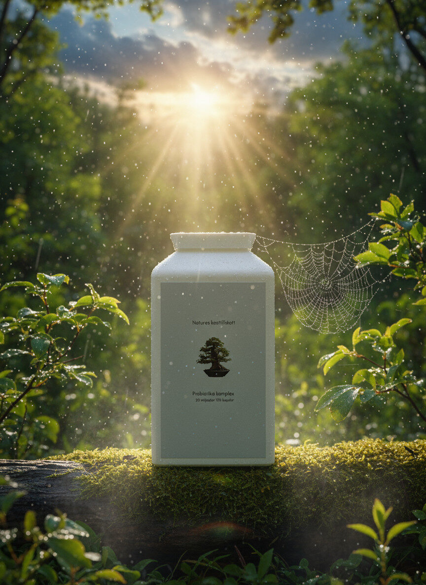 Ingredienser: Fyllnadsmedel: Brunt rismjöl, Aktiv levande kulturblandning: (Bifidobacterium longum, Bifidobacterium bifidum, Lactobacillus acidophilus, Streptococcus thermophilus, Lactobacillus casei rhamnosus, Bifidobacterium animalis lactis), Kapselskal: (Hydroxypropylmetylcellulosa, Gellangummi), Cikoriainulin (Fruktooligosackarider), Klumpförebyggande medel: Magnesiumstearat