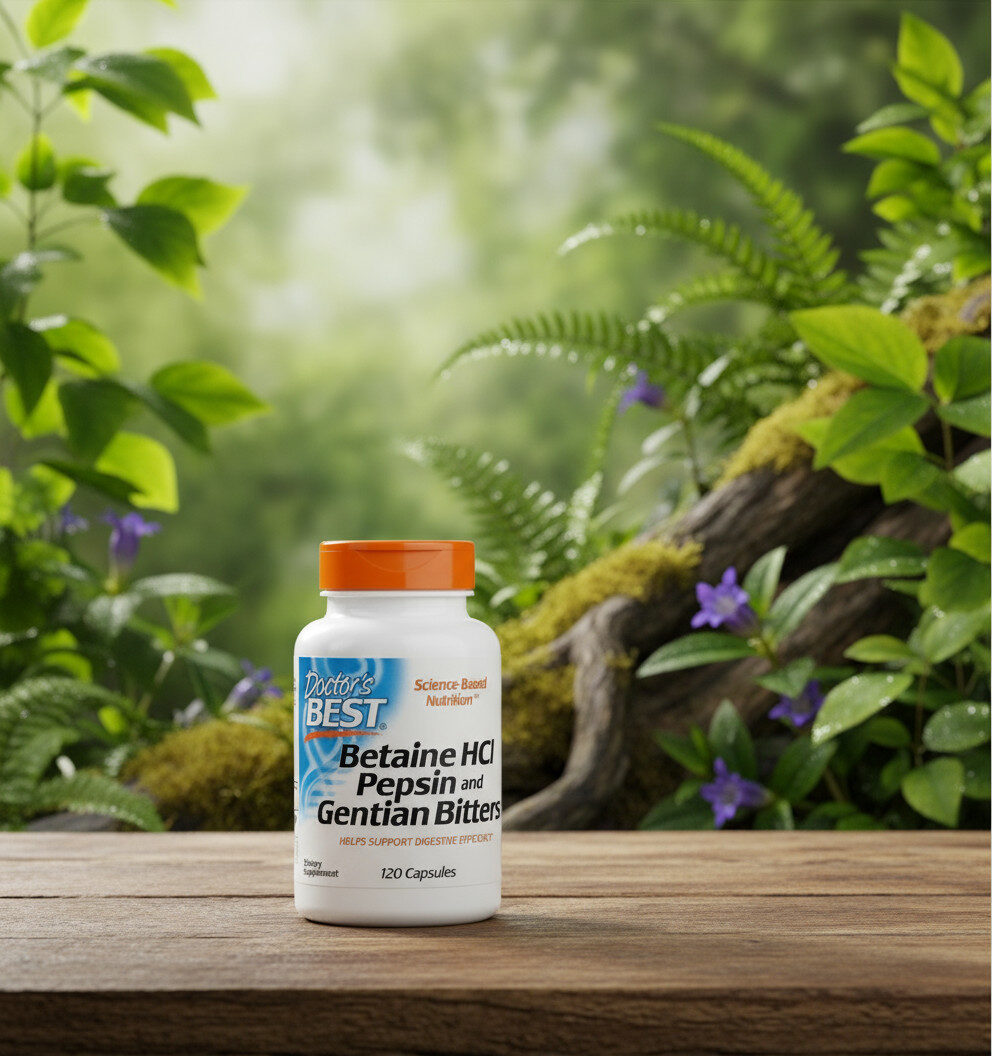 Ingredienser: Betain, Pepsin, Gentiana, Stearinsyra ( från olivolja), Kiseldioxid, Magstearat och Gelatin